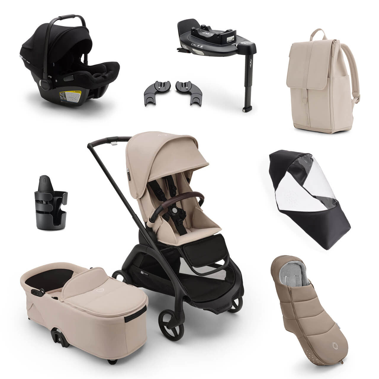 Bugaboo Dragonfly Ultimate Bundle & Free Bugaboo Giraffe Baby Rocker - Black/Desert Taupe
