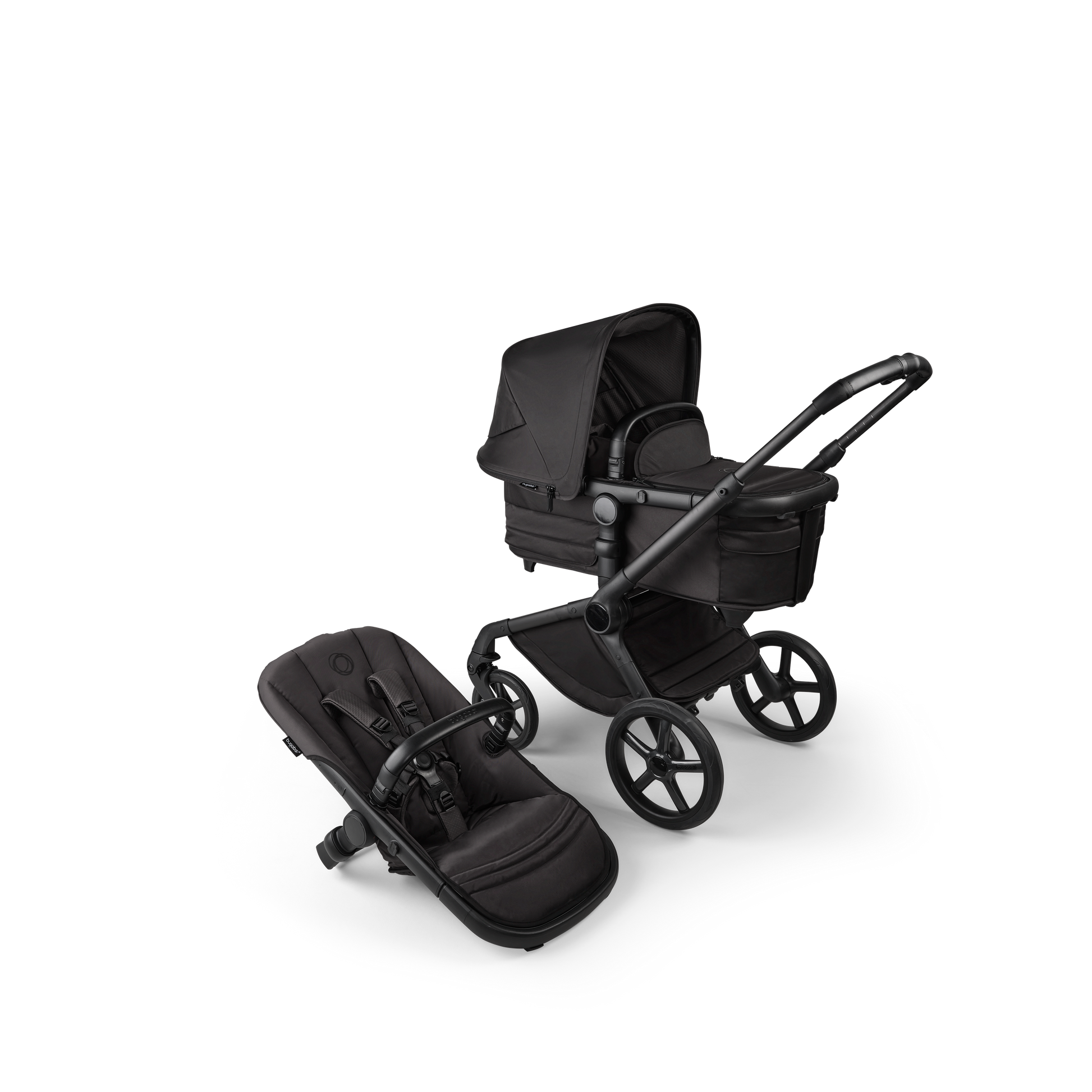 The Bugaboo Noir Limited Edition in Black Moonlight – a Bugaboo Fox 5 exclusive. Elevated in three shades of the night, and crafted for exceptional comfort, this iconic all-terrain pushchair design goes beyond our best ride ever. The Noir limited edition features uniquely styled, sturdy yet light chassis and comfort Knit seat. The limited edition pushchair also has an extra large underseat basket with a new built-in cover to offer upgraded protection for your essentials.