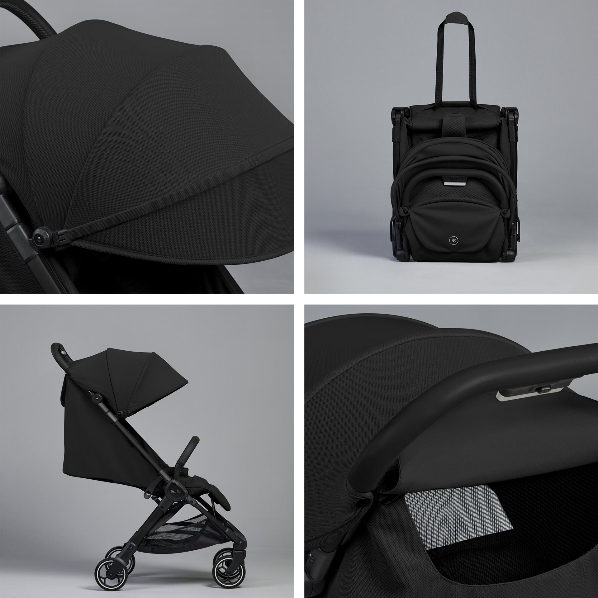 The award winning Silver Cross Clic 2 in Space, effortlessly lightweight and compact stroller designed for every adventure. A staple all black option with a dark detailed black chassis, this sleek colourway is incredibly durable and a popular staple