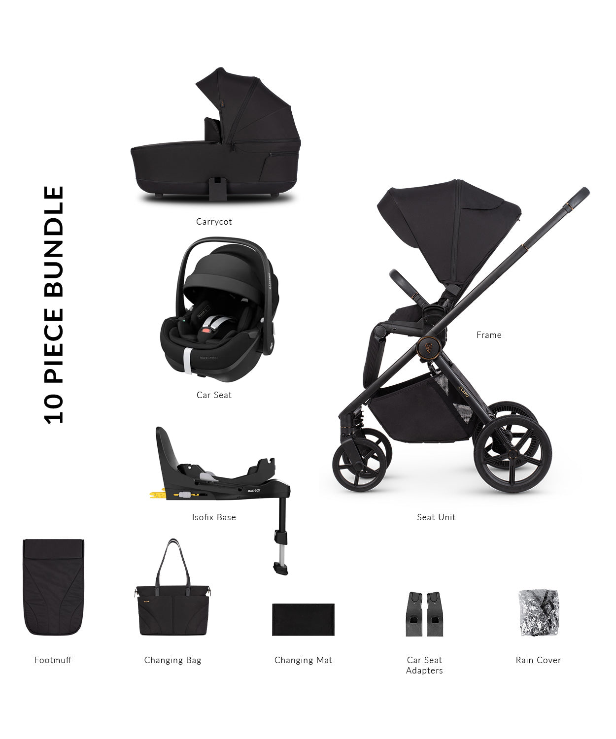 Venicci Claro 3 in 1 including Maxi-Cosi Pebble 360 Pro2 & Base - Noir